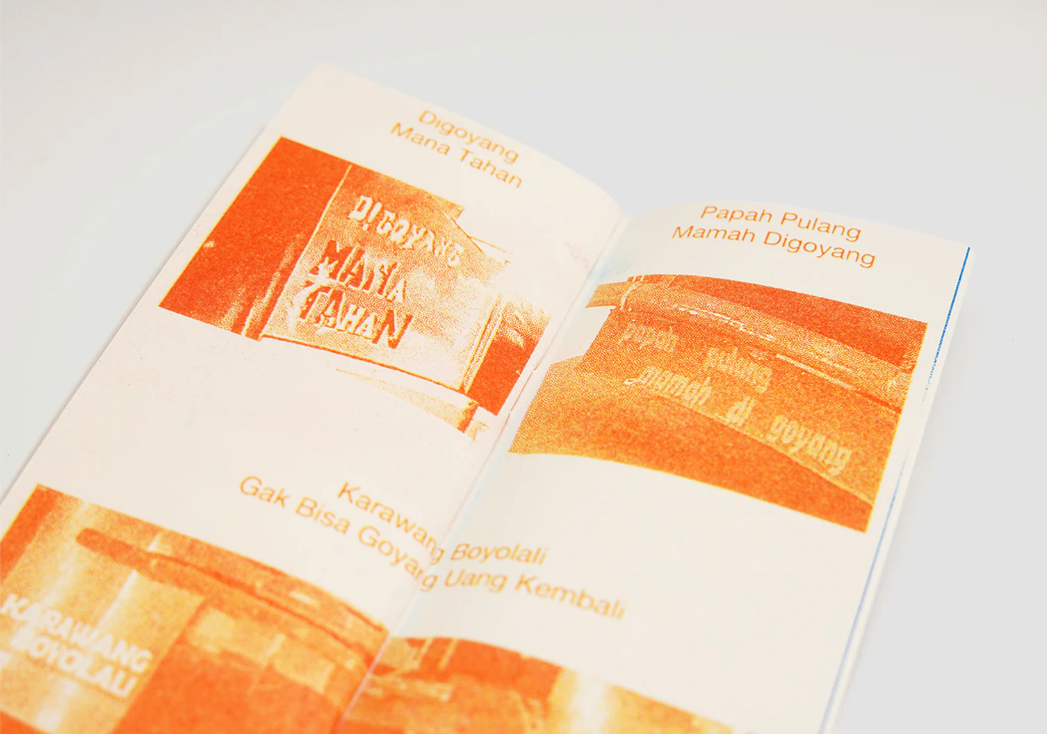 Tua di Jalan documents witty, vulgar and mostly sexist jargon glued onto street vehicles all across Indonesia. These attention-grabbing vernaculars are popular as an easy distrac - tion, a casual means for truck drivers to throw one-liners at each other and most importantly, provides a quick entertainment from their gritty and exhausting daily grind.
