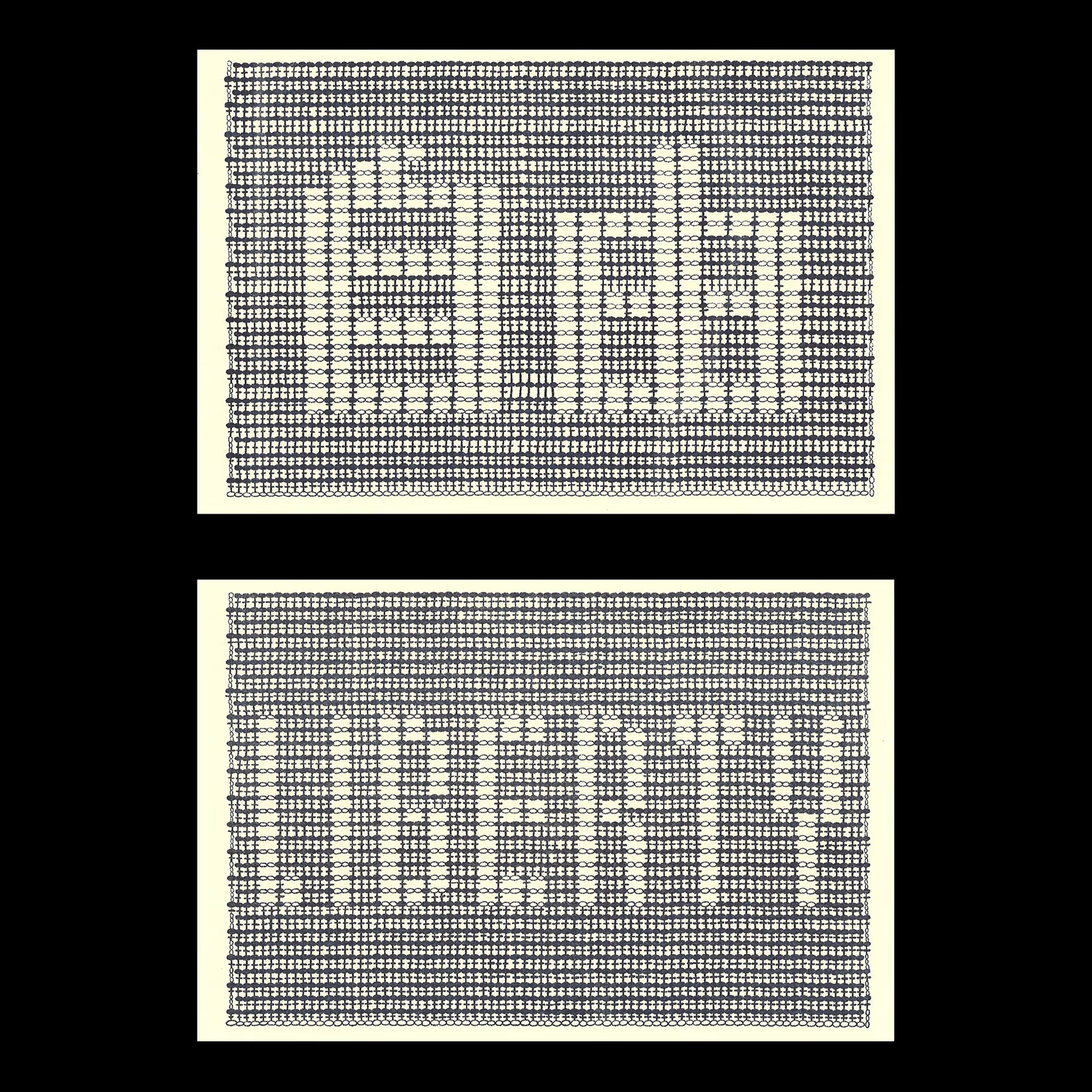 Set of two postcards by textile artist Xiao Guo, using crochet notation to adapt their 2022 Liberty Crochet Project into an easily distributed physical form, part of an upcoming collaboration between Everything Matters and Guo.