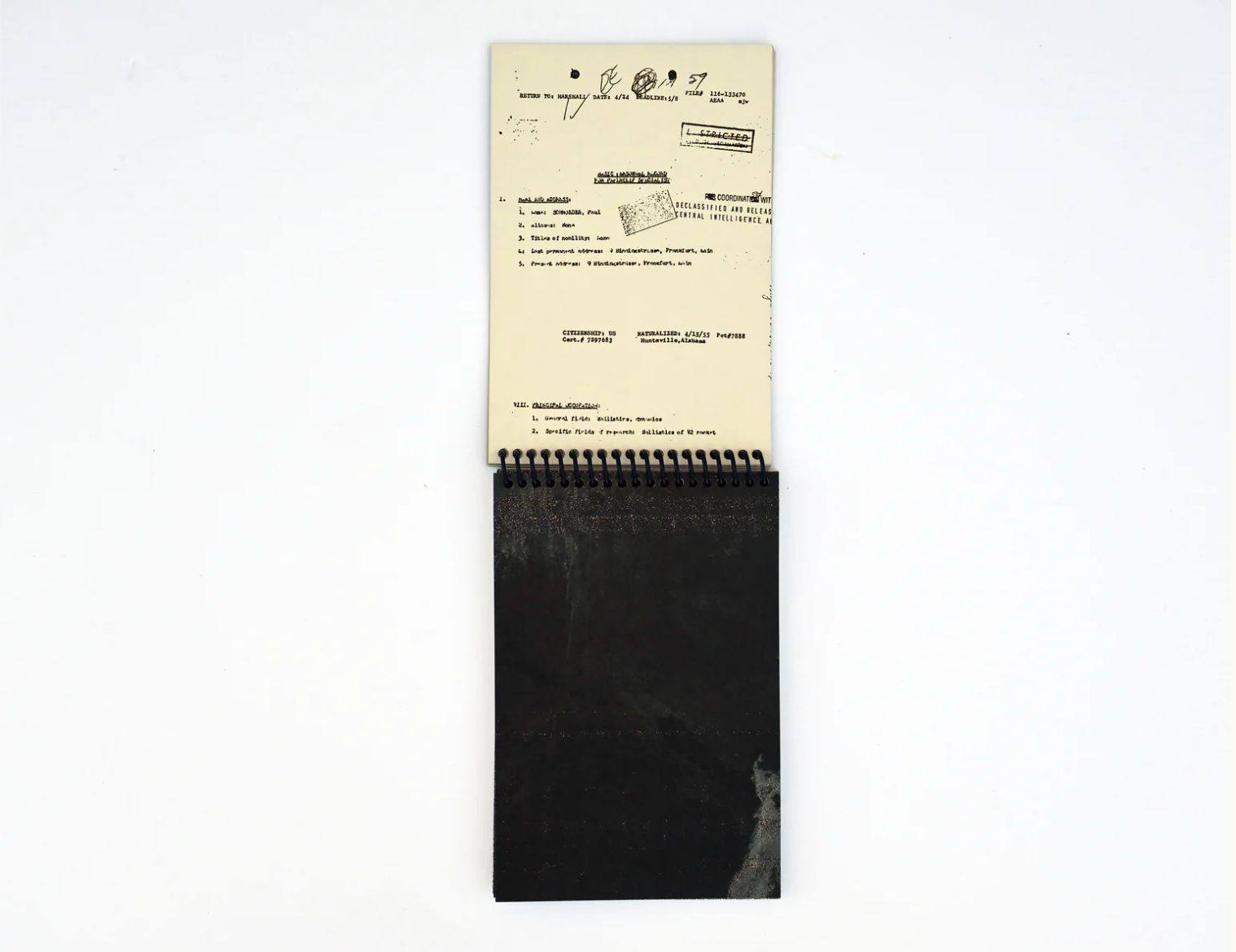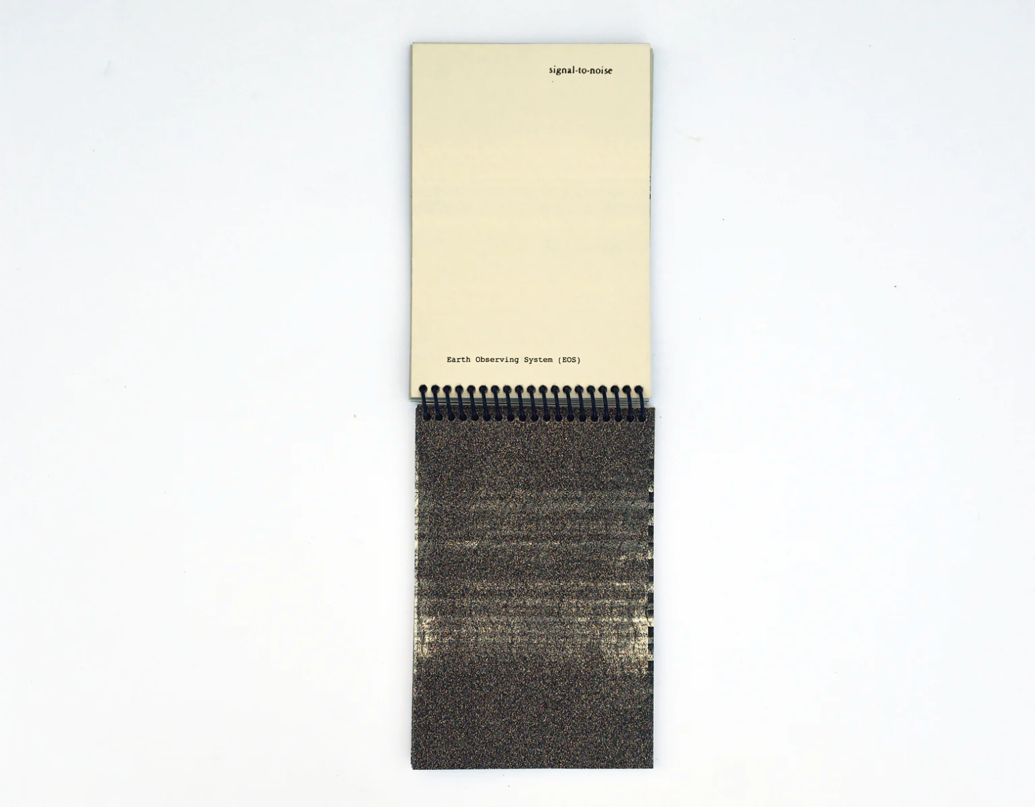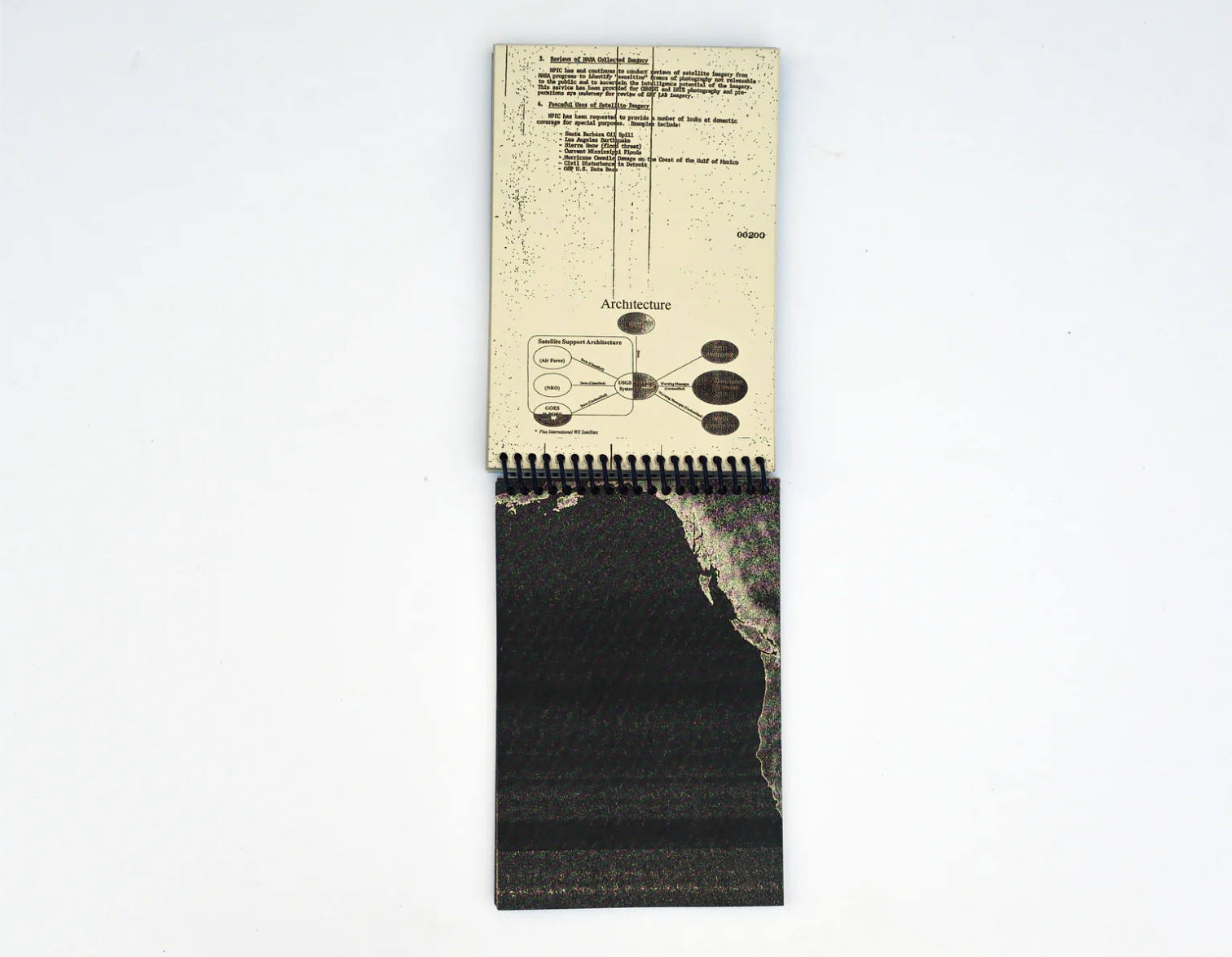 To Hear a Shadow is the culmination of a research project into weather satellites. Over the course of two years, artists Brian Bartz and Kelley O’Leary used open-source radio technology and a hand-built antenna to intercept transmissions from aging NOAA satellites (officially decommissioned in June 2025). The images they found traveling invisibly through the air became the scaffolding for this book. Meanwhile, they fell down a rabbit hole, sifting through declassified Cold War era documents surrounding earth-imaging and the utility of vertical perspectives to the state. This ultimately led the artists to speculative questions surrounding the relationship between network infrastructure, militarization, and cosmic forces beyond human agency.